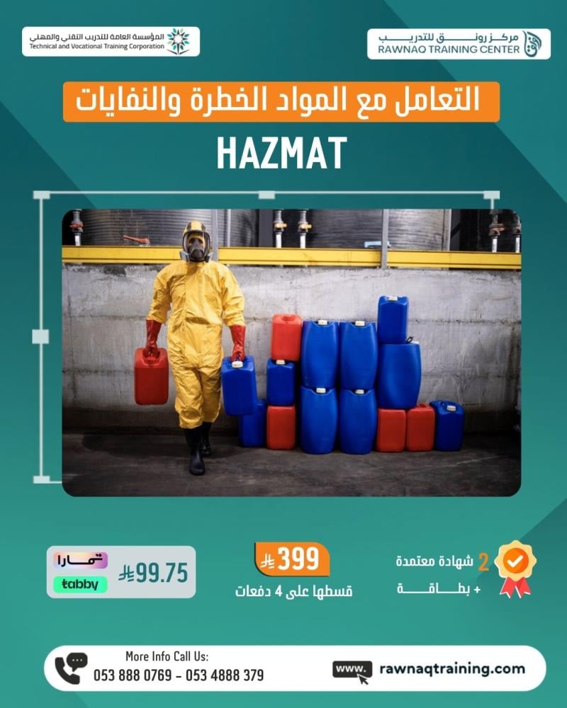 تمنح هذه الدورة المتدربين المعرفة والمهارات العملية للتعامل الآمن مع المواد الخطرة والنفايات، مع تعزيز الوعي بالسلامة المهنية والالتزام بالمعايير المعتمدة.